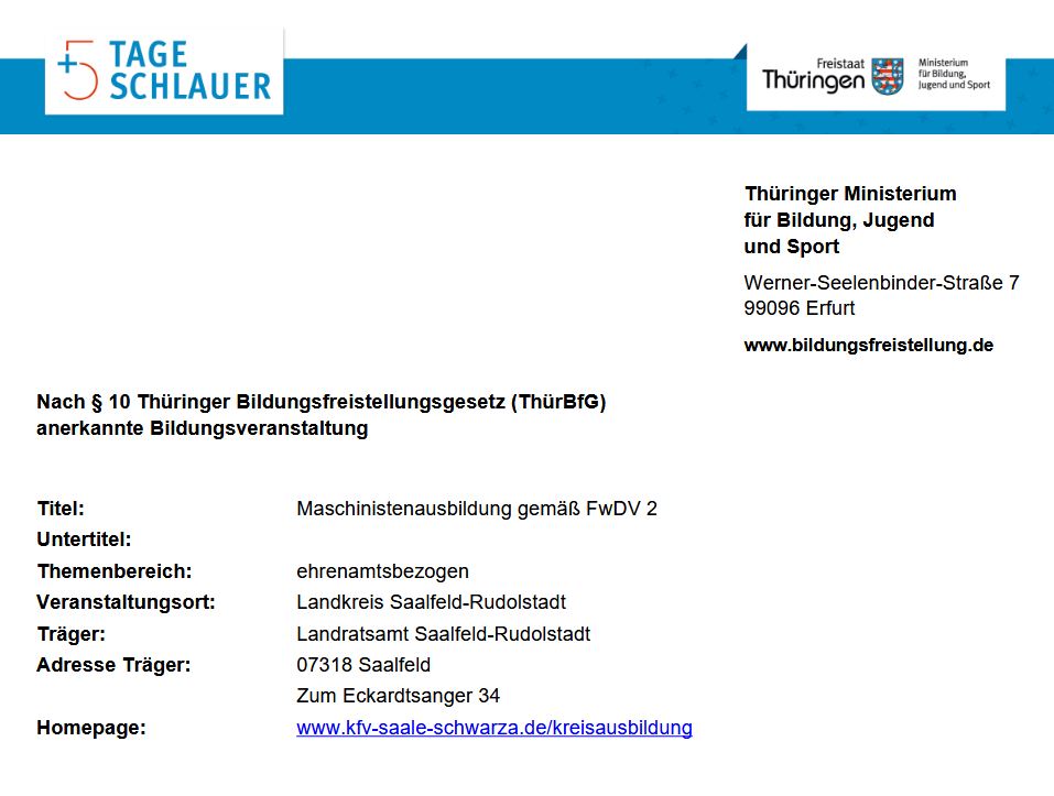 Ausbildungsort: FF Crösten (Saalfeld)