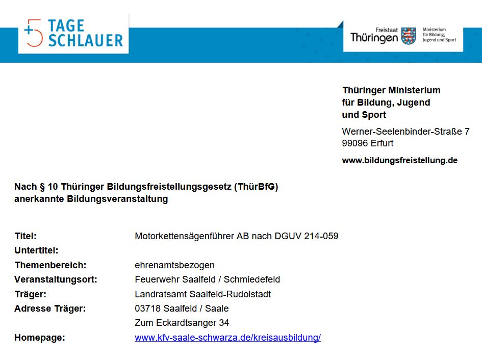 Ausbildungsort: FF Schmiedefeld (Saalfeld)